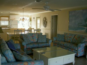 Looks absolutely brand new inside! Completely updated with new tile, new carpet, new furniture, remodeled kitchen, new paint, lots of new windows, some new pilings on dock – this house just looks fabulous.